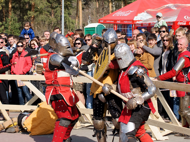 Организовано все было довольно прилично, за исключением разве что ведущего массовика-затейника, который считал, что чем громче он орет всякую хрень про мечи весом 11 кг и отрезанные руки и ноги, тем лучше выполняет свою работу. Аналогичная ситуация кстати была и на Каменном поясе в Миассе, где похожий кадр уже второй год считает, что комментирует выступление клоунов.